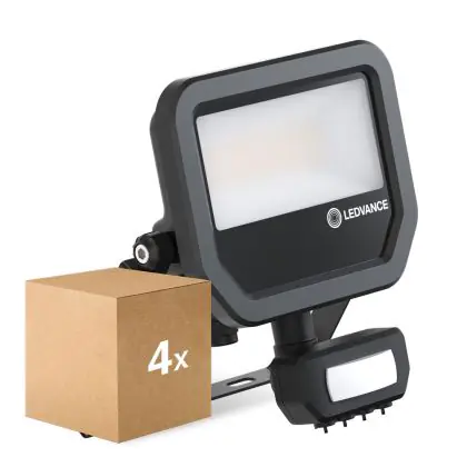 Descrizione Confezione Multipack 4x Ledvance Proiettore LED Aluminium Nero 17W 2400lm 100D - 840 Bianco Freddo | IP65 - Sensore di Movimento e Luce - Simmetrico