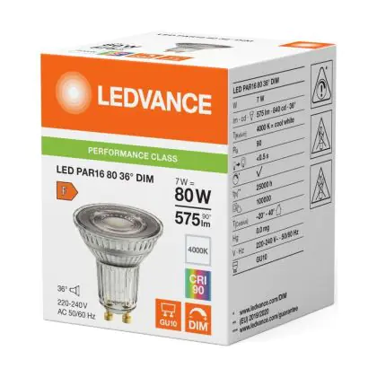 Descrizione Ledvance LED PAR16 GU10 Riflettore 7W 575lm 36D - 940 Bianco Freddo | Miglior Resa Cromatica - Dimmerabile - Sostitutiva 80W