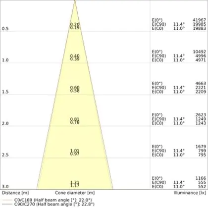 L'apertura del fascio luminoso indica l'angolo del fascio di luce proveniente da una lampada o lampadina. Si misura in gradi (D) e più piccolo è l'angolo, più piccola è l'apertura del fascio di luce.