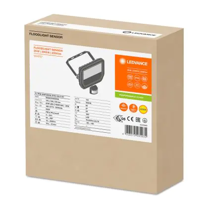 Descrizione Ledvance Proiettore LED Sensor GEN 3 Bianca 20W 2200lm 100D - 830 Luce Calda | IP65 - Sensore di movimento e luce - Simmetrico