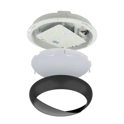 Descrizione Noxion Bulkhead LED Pro V2 Bianca 12/16/20W 2400lm - 830-840-865 CCT | 325mm - IP65 + Palpebra Il Anello Nero