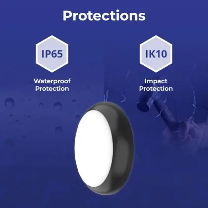 Un elemento importante delle plafoniere e delle applique LED è il loro livello di proezione IP, che indica la protezione contro l'ingresso di polvere e umidità/acqua. A partire da IP65, un apparecchio di illuminazione è a prova di polvere e acqua. Il valore IP di questa plafoniera LED è: IP65. Stai cercando una plafoniera LED per esterni? Allora presta attenzione alla protezione da urti e impatti, ovvero il valore IK, che per questa lampada è IK10 - 20 Joule.