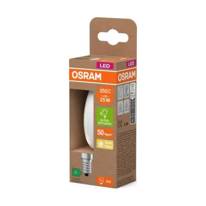 La lampada Osram LED Classic E14 Candela Filamento Ghiaccio 1.2W 255lm - 827 Bianco Molto Caldo | Sostitutiva 25W è il sostituto perfetto per le tue vecchie lampade 25W con attacco a vite piccolo E14 grazie alla sua tecnologia LED. Passare a LED ti offrirà molti vantaggi!