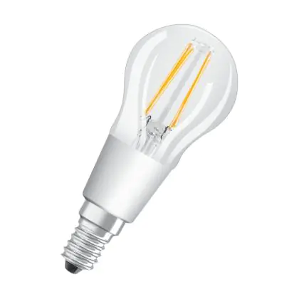 La lampada Osram Retrofit LED E14 Sferica Filamento Chiara 5W 470lm - 927 Bianco Molto Caldo | Miglior resa cromatica - Dimmerabile - Sostitutiva 40W è il sostituto perfetto per le tue vecchie lampade 40W con attacco a vite piccolo E14 grazie alla sua tecnologia LED. Passare a LED ti offrirà molti vantaggi!