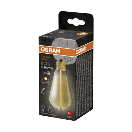 Grazie al suo consumo di soli 2.2W e la sua lunga durata di 15000 ore, puoi risparmiare fino al 60% di energia e con costi di manutenzione abbattuti. Le tradizionali lampadine a incandescenza durano solamente 1000 ore. Installare la lampadina LED è veramente facile, basta svitare la vecchia lampadina E27 ( una volta fredda ) e avvitare successivamente la nuova lampada di Osram con forma Edison nel portalampade. Questo prodotto di Osram è di qualità professionale.