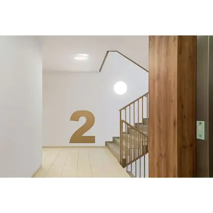 Per scegliere un apparecchio di illuminazione bisogna anche considerare dove verrà installato. Per esempio la luce di 2700 Kelvin (bianco molto caldo) e 3000 Kelvin (bianco caldo) creano un’atmosfera rilassante e piacevole. Questa tonalità è quindi molto adatta ad ambienti accoglienti o a zone generiche come corridoi, ascensori, disimpegni o pianerottoli. Una luce di 4000 Kelvin (bianco freddo), invece,è più luminosa e fresca ed è quindi adatta come illuminazione funzionale in uffici, aziende, scuole e biblioteche. La temperatura di colore di questa plafoniera LED è 3000K - Luce Calda.