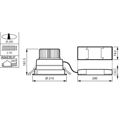 Descrizione Philips Downlight LED LuxSpace Compatto Altezza ridotta DN570B 52.8W 6200lm 80D - 840 Bianco Freddo | 214mm - Aluminium Riflettore